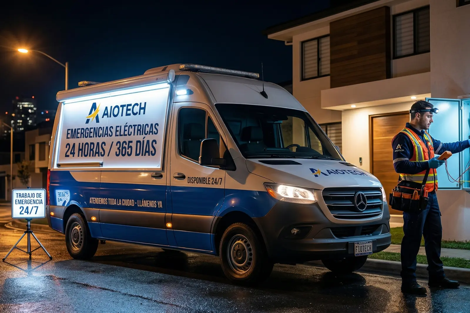 Sí. AIOTECH opera 24 horas, 7 días a la semana, incluyendo noches, fines de semana y feriados. Si tienes una emergencia eléctrica, nuestro equipo se moviliza a cualquier zona de Quito y los valles.